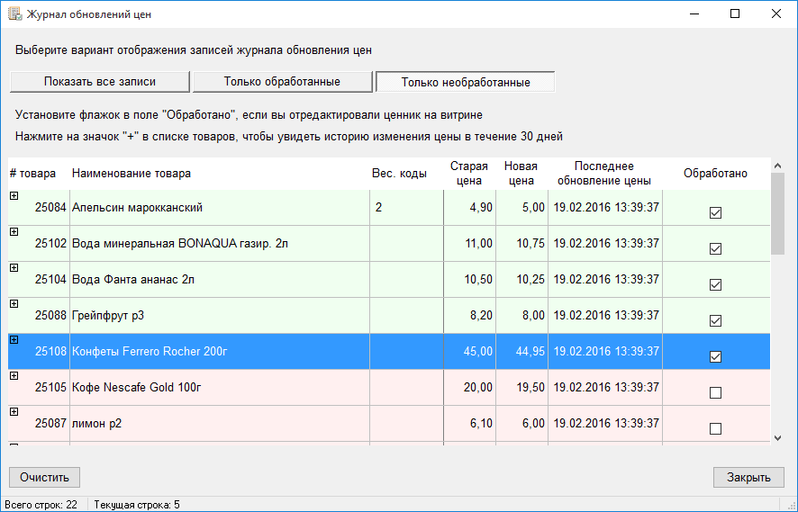 - У списку будуть оброблені та необроблені записи про оновлення ціни.